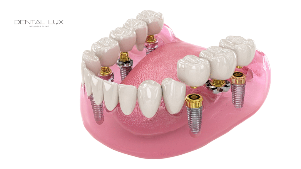 All-on-6 (or other variants): uses 6 or more implants to provide greater stability, especially when bone density is lower or additional support is required.